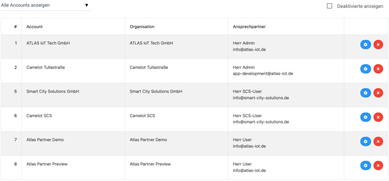 Liste der Rechnungsaccounts