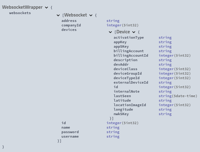 Beispiel für das Modell des Rückgabewertes von /websockets
