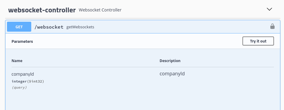 Oben sehen Sie den Typ (in diesem Fall GET) und den Pfad der Methode (in diesem Fall /websockets).