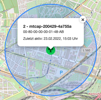Beim Klicken auf ein Gateway oder Sensor werden der Name, die ID und der Status des Objektes angezeigt. Beim Status wird unterschieden zwischen: