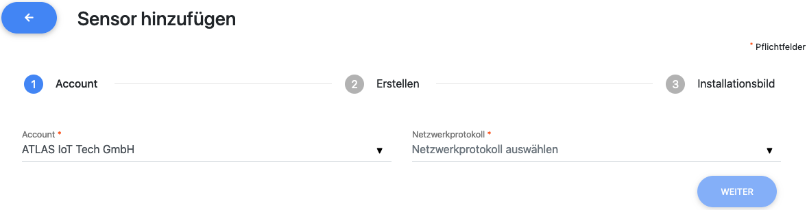 - Rechnungsaccount: In welchem Rechnungsaccount des vorher gewählten Accounts soll der Sensor verrechnet werden?