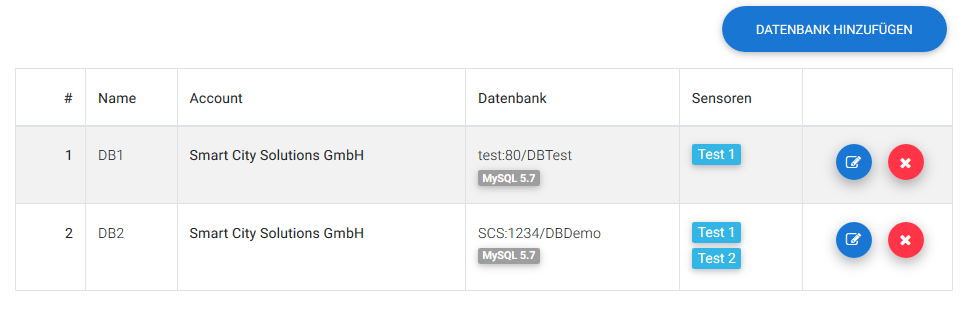 Hier sehen Sie sämtliche Datenbanken, die für Ihren Account eingerichtet wurden.